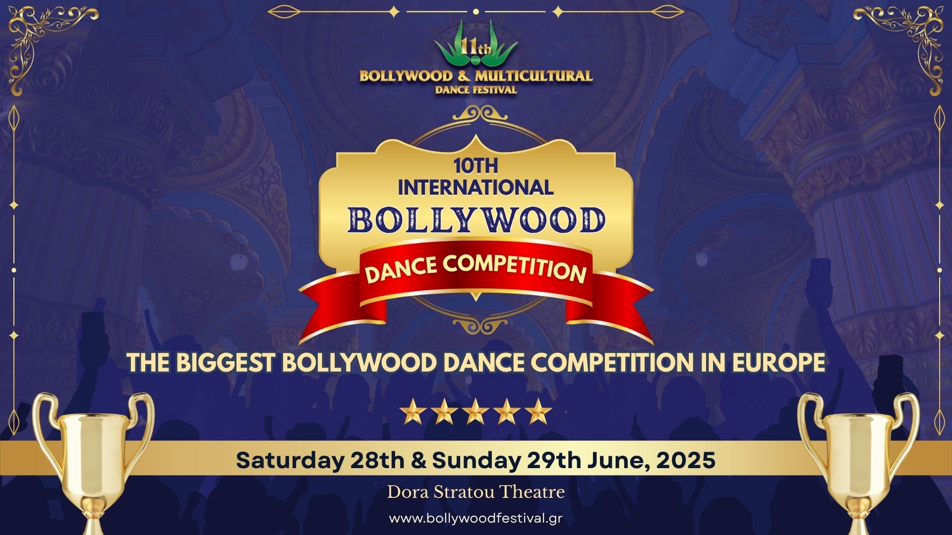 The 11th Bollywood and Multicultural Dance Festival, hosts the “10th International Bollywood Dance Competition” in Greece, which is organized by “Oriental Expression Awards”. The competition will be held at “Dora Stratou” Theatre on Saturday, 28th and Sunday 29th June, 2025, in front of a 10 member Judge Panel and will be divided into two levels (amateur and professional) and two categories (solo and group). The winners will be honored with presents and awards.
