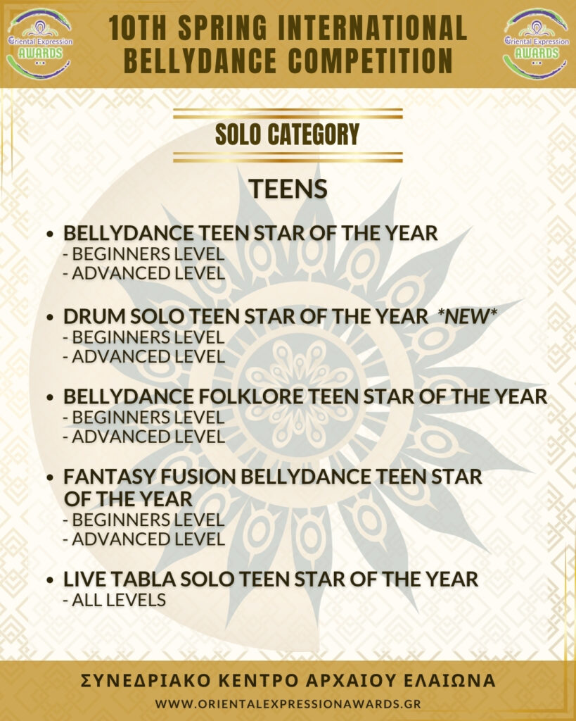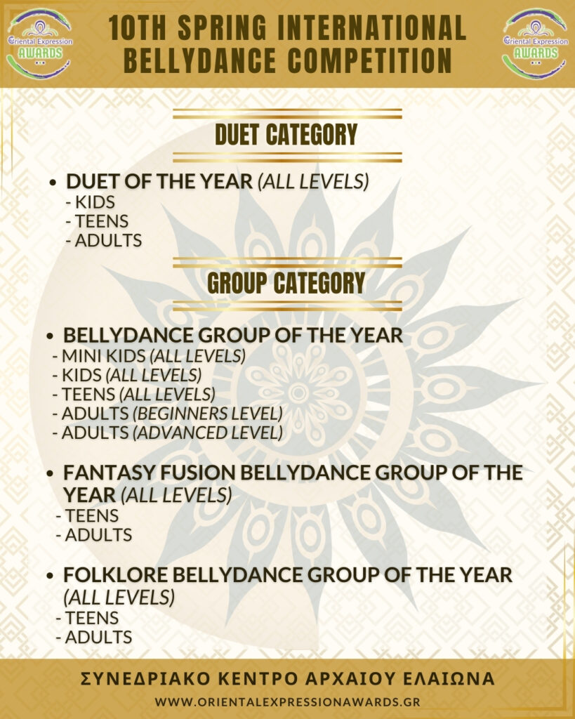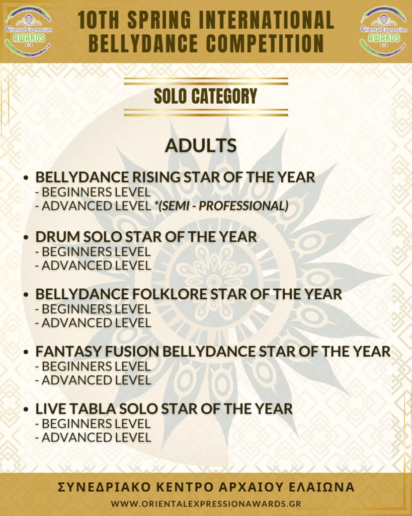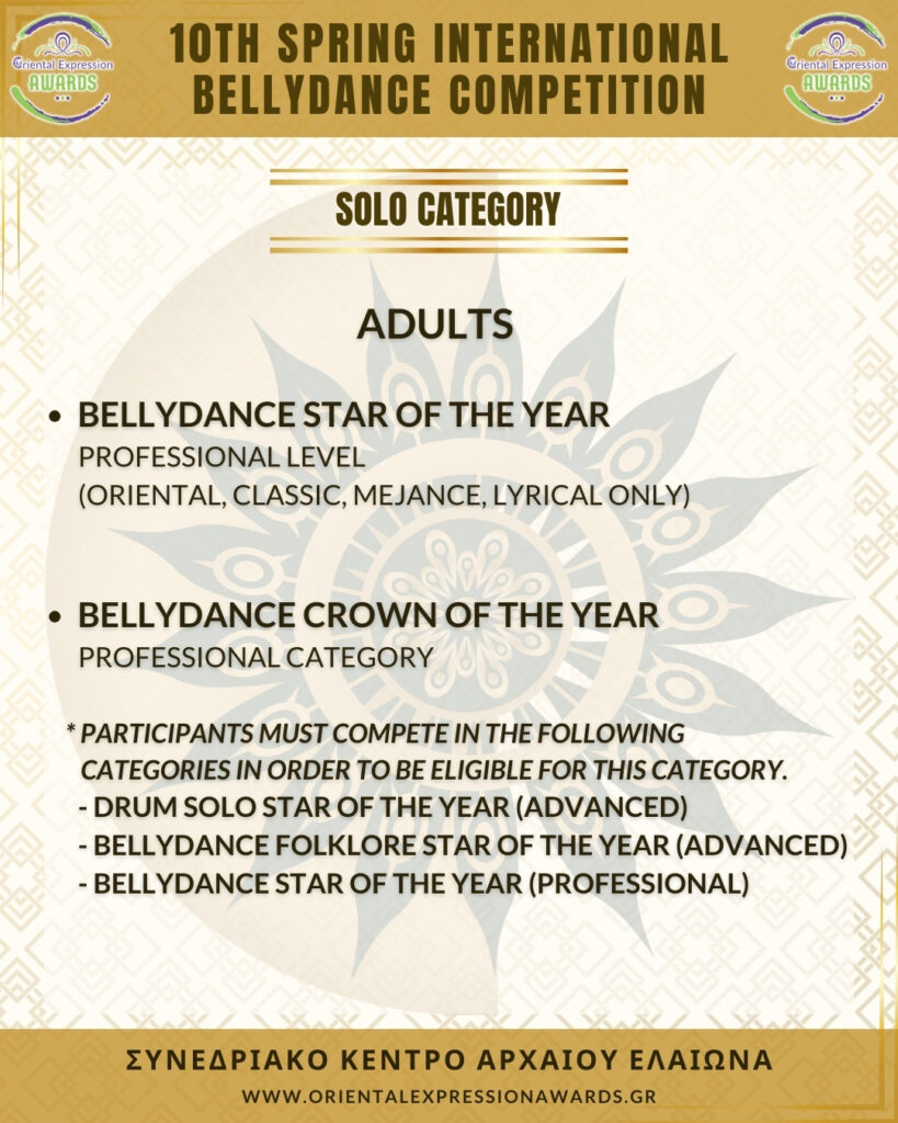 Participation in 4 required categories (Drum Solo Advance - Folklore Advance - Bellydance Star - Crown)